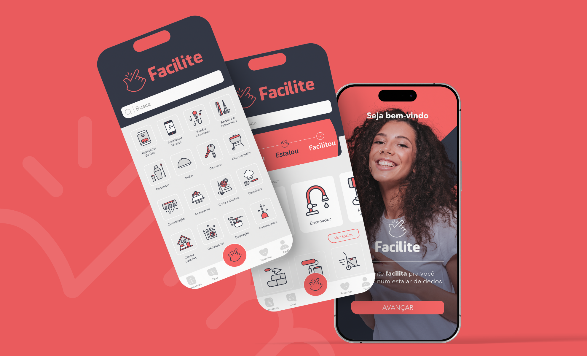 O aplicativo Facilite nasceu com a proposta de conectar prestadores de serviços a quem precisa resolver o dia a dia com rapidez. A DBPV foi responsável por todo o projeto de branding, criando a identidade visual, o sistema gráfico e o design do aplicativo.